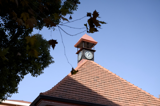 活动从复兴路校区最具标志性的百年钟楼开始。钟楼建成于1909年,整体采用普鲁士风格设计,顶部塔钟由德国运至上海并于同年安装,是上海现存最早的塔钟之一。2023年,钟楼完成系统性修缮,并作为复兴路校区校史馆正式启用。在这里,中英学院校史馆讲解员王艺霖以英语为国际学生讲述校园历史,为参访队伍展开了一场深度的历史之旅。伴随王同学生动详实的讲述,国际生们沿着时间轴线,从德文医工学堂、中法国立通惠工商学校的创办,一路看到今日上海理工大学中英国际学院的蓬勃发展,在近一百二十年的办学历程中,清晰感受到中外合作办学理念的传承与演进。参访中,师生近距离观摩了塔钟的内部构造,亲身体会到学校“时不待人”的精神传承。