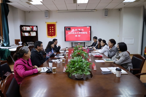 4月23日,华东政法大学档案馆馆长蒋叶红、副馆长彭国云带队来我馆调研档案信息化及数字档案馆建设情况,我校档案馆馆长孔娜、收集指导室负责人刘淑娟、保管利用室负责人廖颖、学生档案室负责人于喆等参加座谈交流。